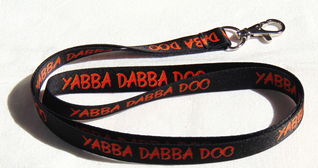 YABBA DABBA DOO print 15mm lanyard for ID, keys, etc. Free UK post.